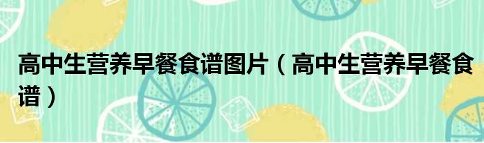 高中生营养早餐食谱图片(高中生营养早餐食谱)