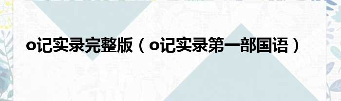 大家好,小东方来为大家解答以上的问题。o记实录完整版,o记实录第一部国语这个很多人还不知道,现在让我们一起来看看吧!