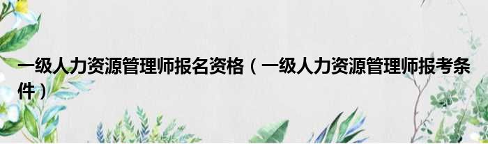 一级人力资源管理师报名资格(一级人力资源管理师报考条件)