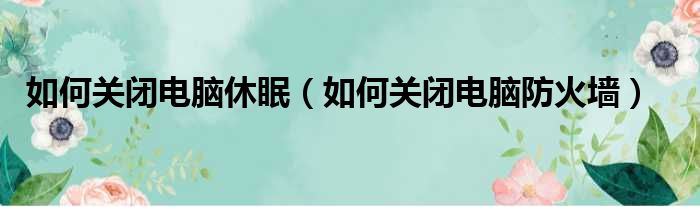 如何关闭电脑休眠(如何关闭电脑防火墙)