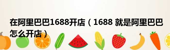 在阿里巴巴1688开店(1688 就是阿里巴巴怎么开店)