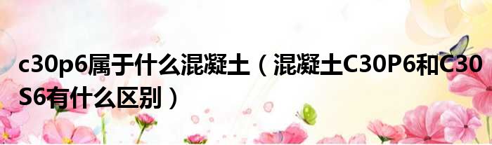 c30p6属于什么混凝土(混凝土C30P6和C30S6有什么区别)