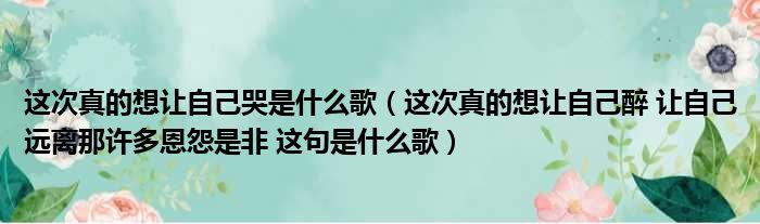 这次真的想让自己哭是什么歌(这次真的想让自己醉 让自己远离那许多恩怨是非 这句是什么歌)