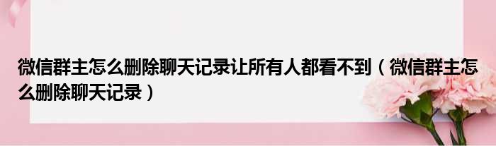 微信群主怎么删除聊天记录让所有人都看不到(微信群主怎么删除聊天记录)