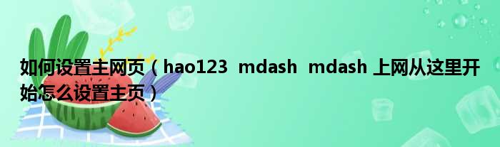 如何设置主网页(hao123 mdash mdash 上网从这里开始怎么设置主页)