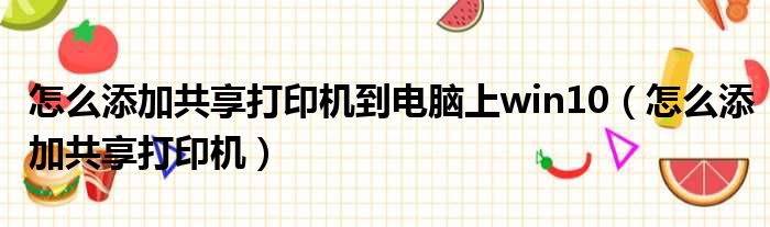 怎么添加共享打印机到电脑上win10(怎么添加共享打印机)