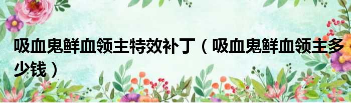 吸血鬼鲜血领主特效补丁(吸血鬼鲜血领主多少钱)