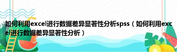 如何利用excel进行数据差异显著性分析spss(如何利用excel进行数据差异显著性分析)