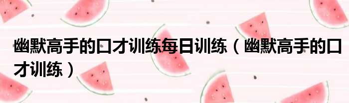 幽默高手的口才训练每日训练(幽默高手的口才训练)