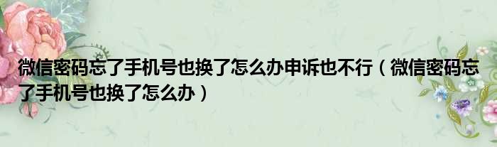 微信密码忘了手机号也换了怎么办申诉也不行(微信密码忘了手机号也换了怎么办)