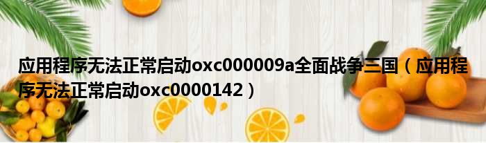 应用程序无法正常启动oxc000009a全面战争三国(应用程序无法正常启动oxc0000142)