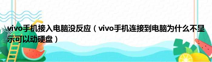vivo手机接入电脑没反应(vivo手机连接到电脑为什么不显示可以动硬盘)