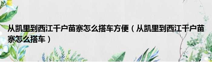 从凯里到西江千户苗寨怎么搭车方便(从凯里到西江千户苗寨怎么搭车)