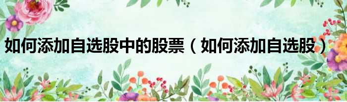 大家好,小东方来为大家解答以上的问题。如何添加自选股中的股票,如何添加自选股这个很多人还不知道,现在让我们一起来看看吧!