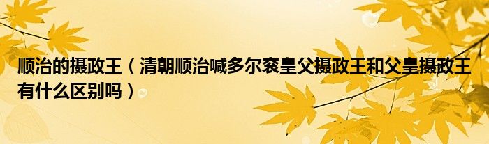 顺治的摄政王(清朝顺治喊多尔衮皇父摄政王和父皇摄政王有什么区别吗)