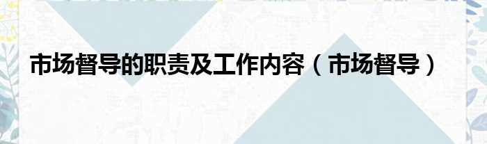 大家好,小东方来为大家解答以上的问题。市场督导的职责及工作内容,市场督导这个很多人还不知道,现在让我们一起来看看吧!