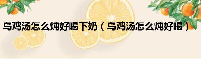 乌鸡汤怎么炖好喝下奶(乌鸡汤怎么炖好喝)