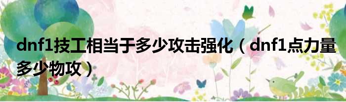 dnf1技工相当于多少攻击强化(dnf1点力量多少物攻)