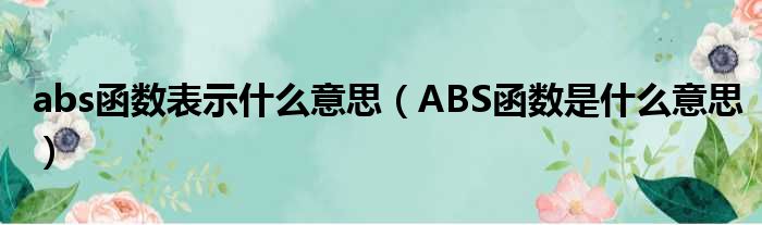 大家好,小东方来为大家解答以上的问题。abs函数表示什么意思,ABS函数是什么意思这个很多人还不知道,现在让我们一起来看看吧!