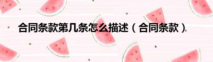 大家好,小东方来为大家解答以上的问题。合同条款第几条怎么描述,合同条款这个很多人还不知道,现在让我们一起来看看吧!