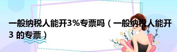 一般纳税人能开3%专票吗(一般纳税人能开3 的专票)