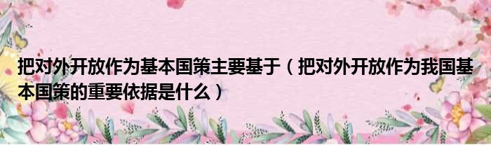 把对外开放作为基本国策主要基于(把对外开放作为我国基本国策的重要依据是什么)