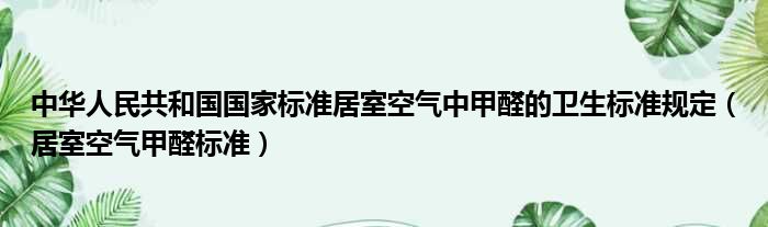 中华人民共和国国家标准居室空气中甲醛的卫生标准规定(居室空气甲醛标准)