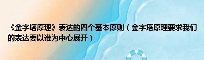 《金字塔原理》表达的四个基本原则(金字塔原理要求我们的表达要以谁为中心展开)