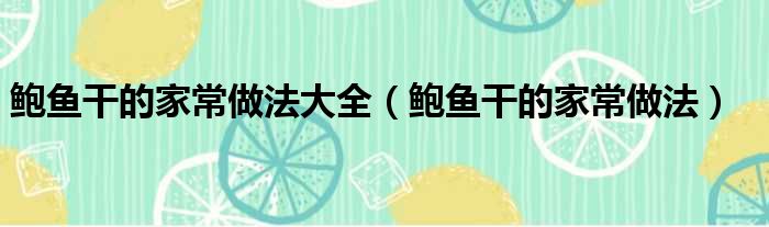 鲍鱼干的家常做法大全(鲍鱼干的家常做法)