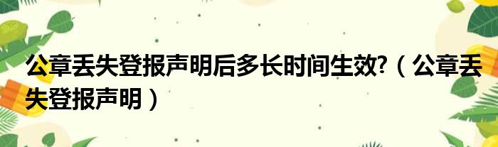 公章丢失登报声明后多长时间生效?(公章丢失登报声明)