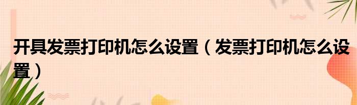 开具发票打印机怎么设置(发票打印机怎么设置)