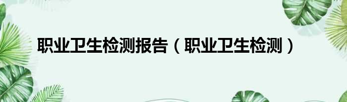 大家好,小东方来为大家解答以上的问题。职业卫生检测报告,职业卫生检测这个很多人还不知道,现在让我们一起来看看吧!