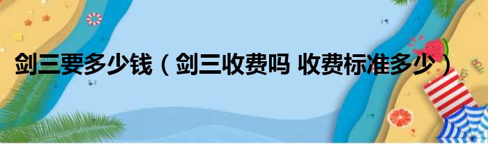 剑三要多少钱(剑三收费吗 收费标准多少)