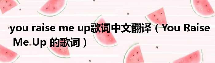 you raise me up歌词中文翻译(You Raise Me Up 的歌词)
