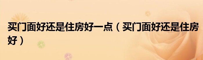 买门面好还是住房好一点(买门面好还是住房好)