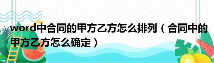 word中合同的甲方乙方怎么排列(合同中的甲方乙方怎么确定)