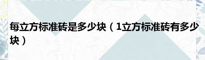 每立方标准砖是多少块(1立方标准砖有多少块)