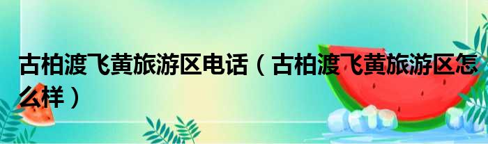 古柏渡飞黄旅游区电话(古柏渡飞黄旅游区怎么样)