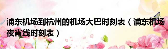 浦东机场到杭州的机场大巴时刻表(浦东机场夜宵线时刻表)