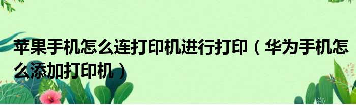 苹果手机怎么连打印机进行打印(华为手机怎么添加打印机)