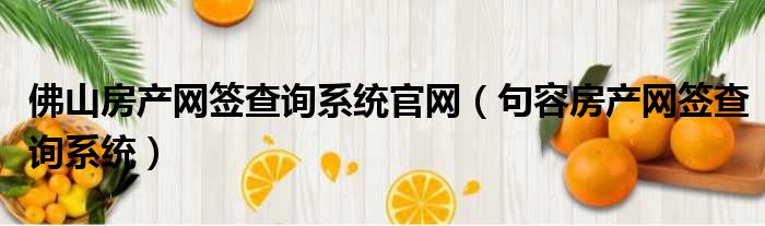 佛山房产网签查询系统官网(句容房产网签查询系统)