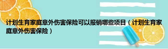 计划生育家庭意外伤害保险可以报销哪些项目(计划生育家庭意外伤害保险)