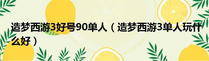 造梦西游3好号90单人(造梦西游3单人玩什么好)