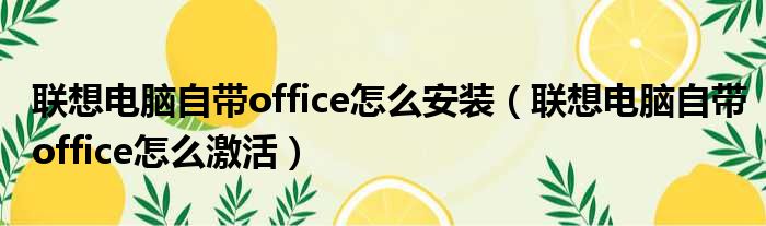 联想电脑自带office怎么安装(联想电脑自带office怎么激活)
