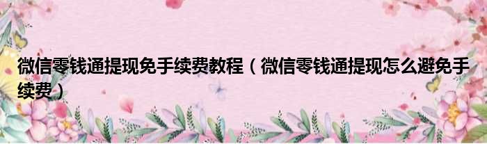 微信零钱通提现免手续费教程(微信零钱通提现怎么避免手续费)