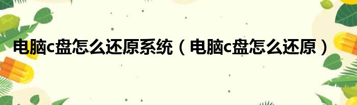 电脑c盘怎么还原系统(电脑c盘怎么还原)