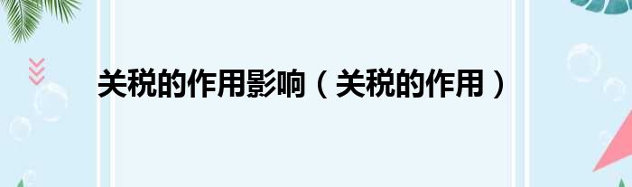 关税的作用影响(关税的作用)