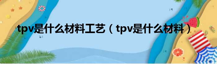 大家好,小东方来为大家解答以上的问题。tpv是什么材料工艺,tpv是什么材料这个很多人还不知道,现在让我们一起来看看吧!