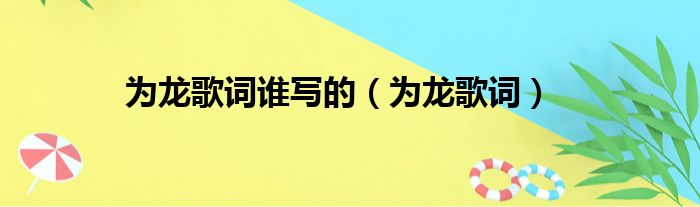 大家好,小东方来为大家解答以上的问题。为龙歌词谁写的,为龙歌词这个很多人还不知道,现在让我们一起来看看吧!