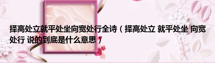 择高处立就平处坐向宽处行全诗(择高处立 就平处坐 向宽处行 说的到底是什么意思)